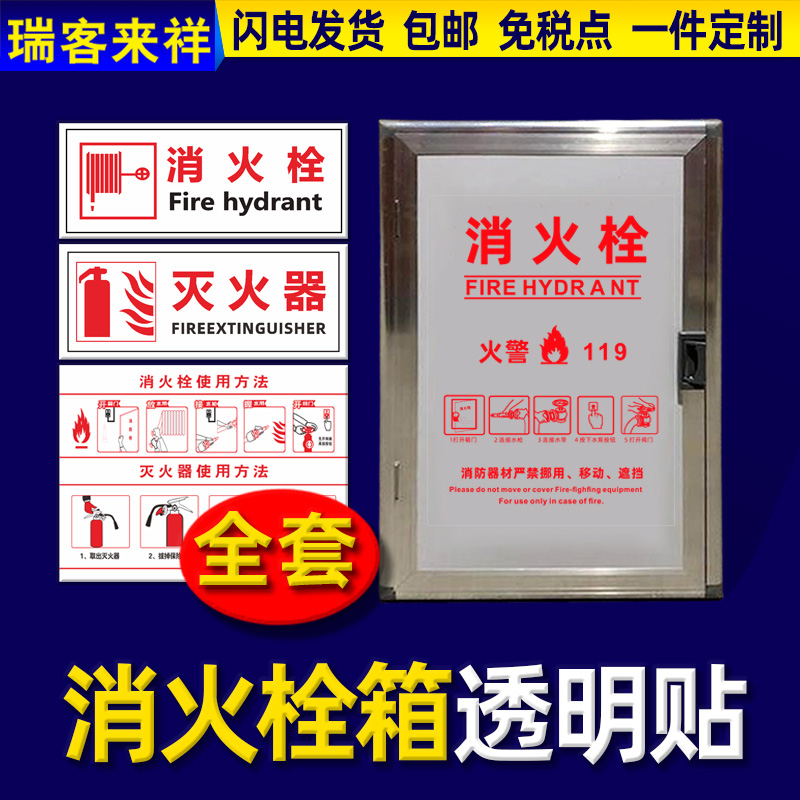 灭火器消火栓箱火警119透明贴纸消防栓使用方法说明安全标识标志牌灭火器放置点使用方法指示牌警示牌贴定做
