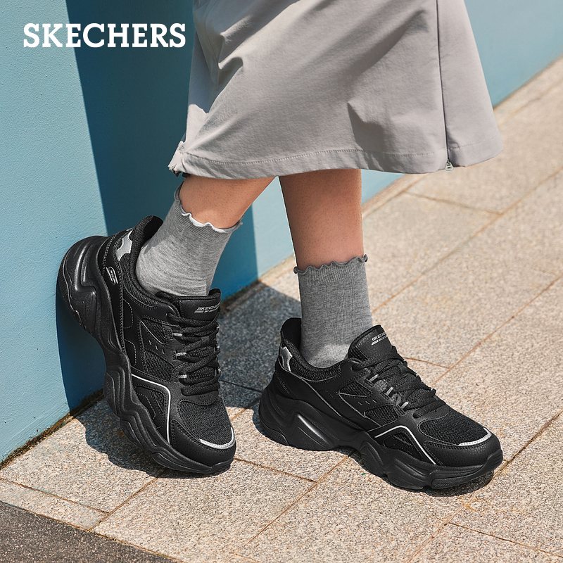 斯凯奇熊猫鞋秋冬季新款女鞋厚底增高休闲鞋银色老爹鞋时尚运动鞋