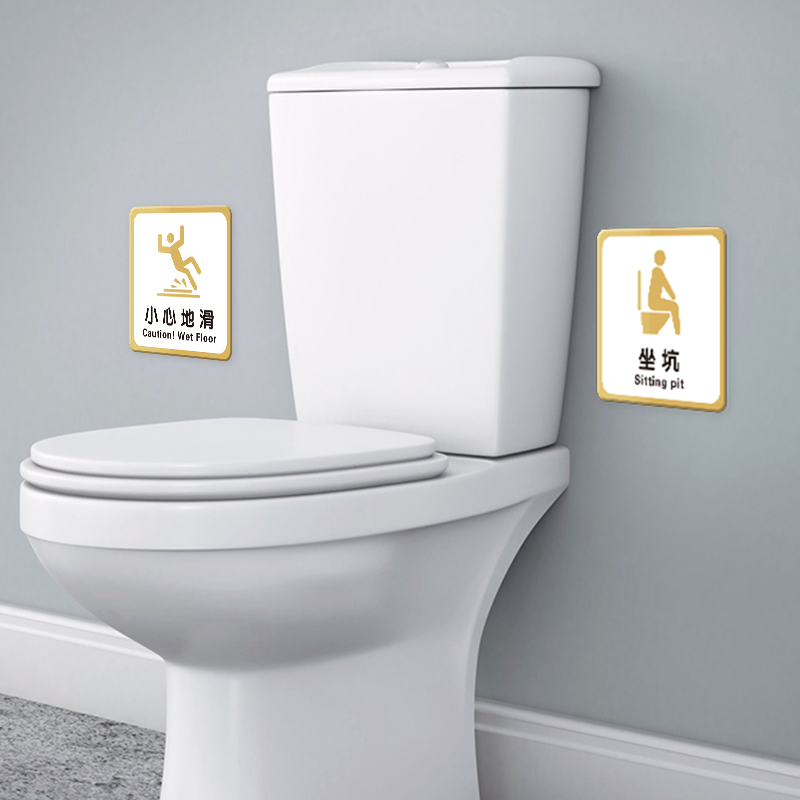 亚克力双层金色洗手间温馨提示贴牌卫生间男女厕所洗手液擦手纸禁止吸烟提示牌感应出水标识牌提醒牌墙贴定制