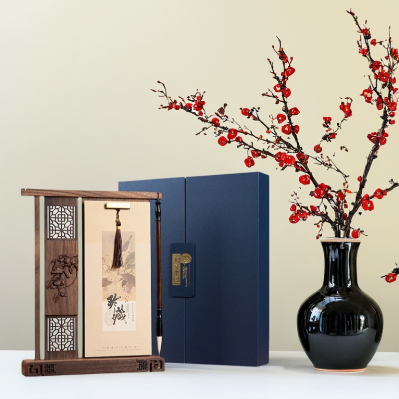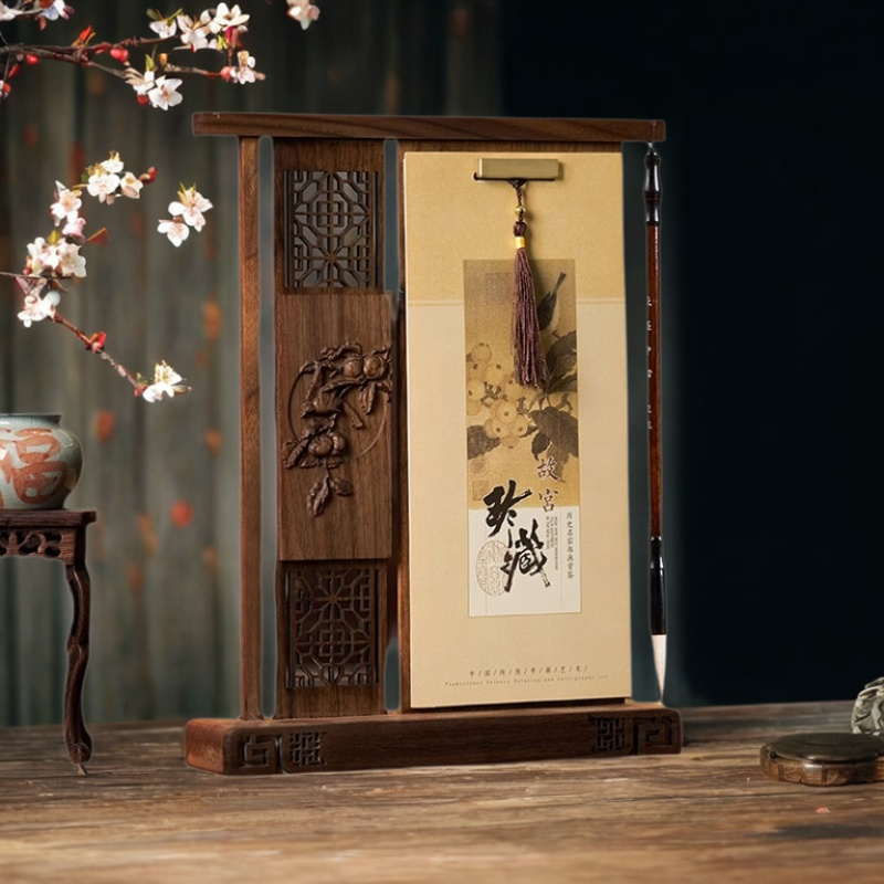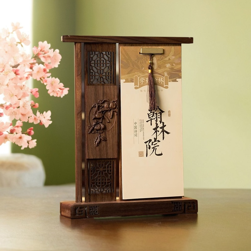 实木台历2025年新款企业定制国风礼盒定做高档商务礼品送客户办公桌面摆件节庆伴手礼送领导高端屏风文创日历