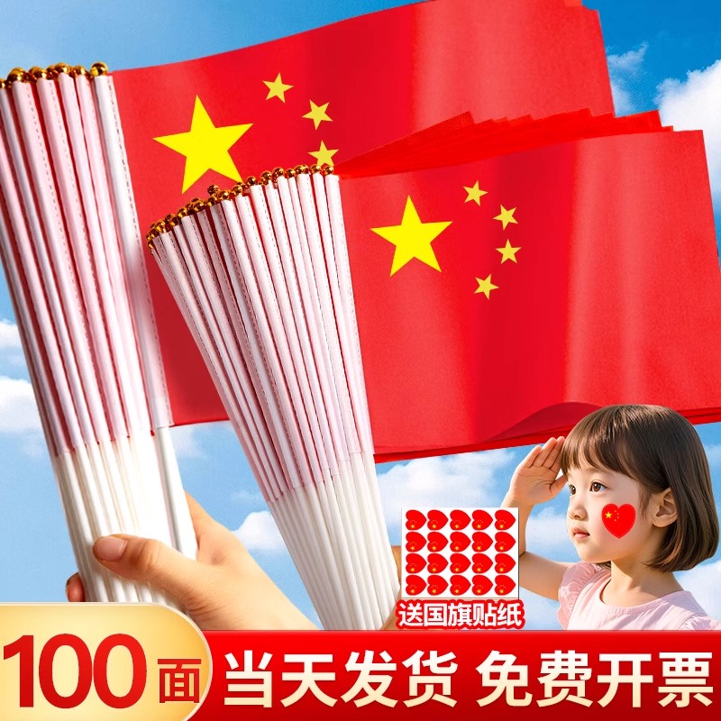 7天内8000人国庆节小红旗手摇旗国旗装饰8号7号党旗手持五星旗帜穿好杆PVC杆结实工厂幼儿园活动防水落地双面