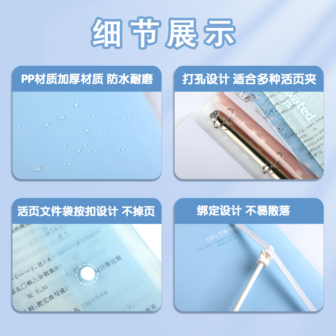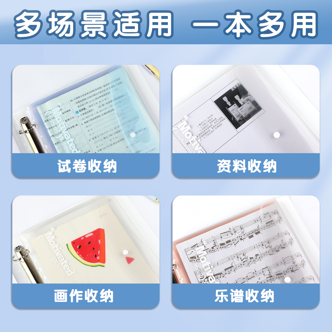 得力A4文件夹三孔活页夹试卷资料整理收纳夹大容量加厚试卷夹学生用卷子乐谱资料册透明插页档案夹内置插页袋