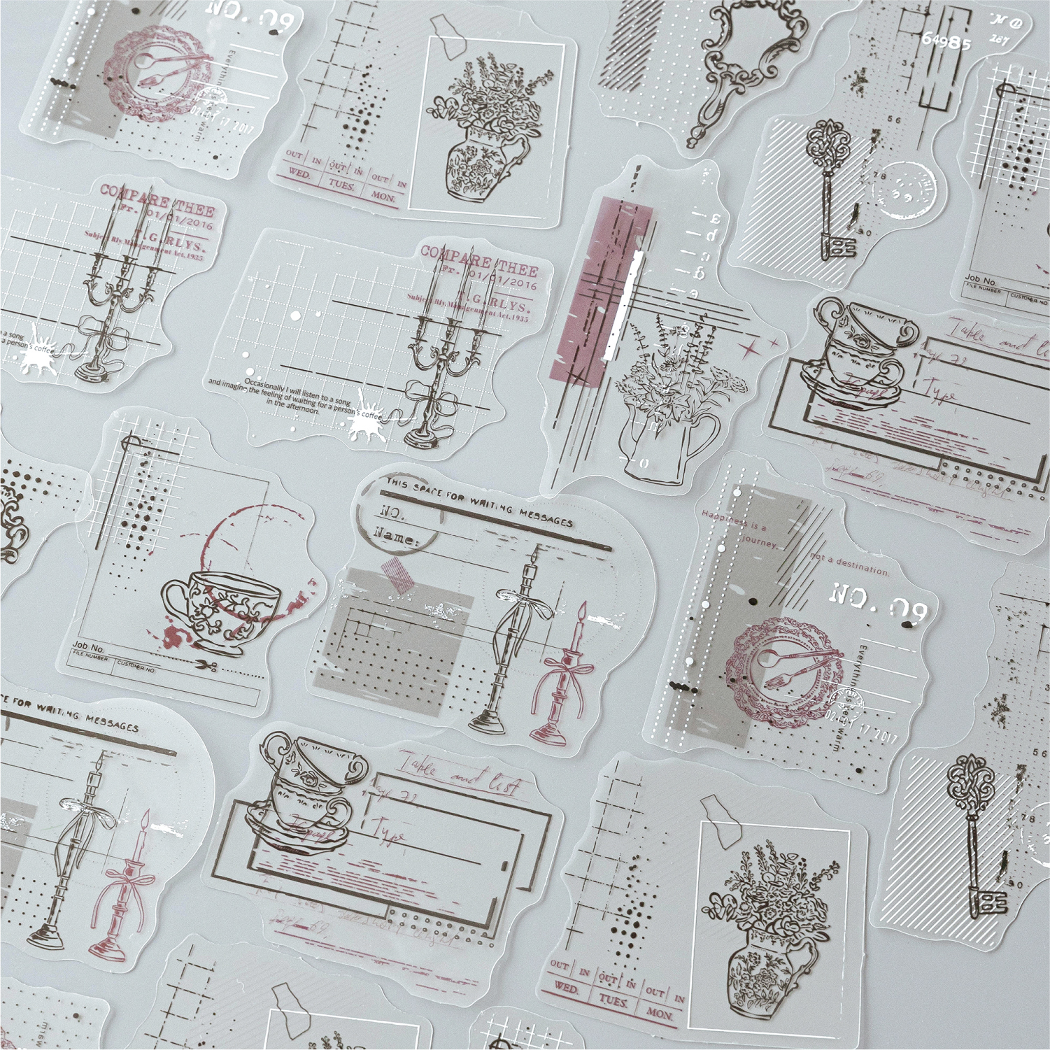 朦胧痕迹PET贴纸包复古植物蝴蝶星星边框手帐diy拼贴装饰贴画
