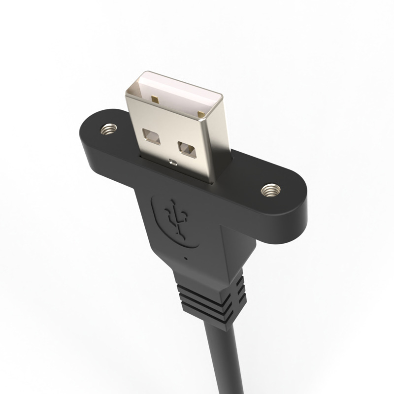 公头和母头均带螺丝 双头可固定 USB2.0公头带螺丝孔母 头带耳朵可固定面板延长线数据线 USB公头带耳朵USB-A