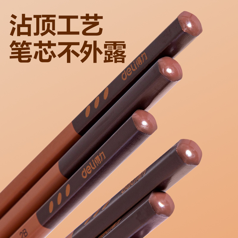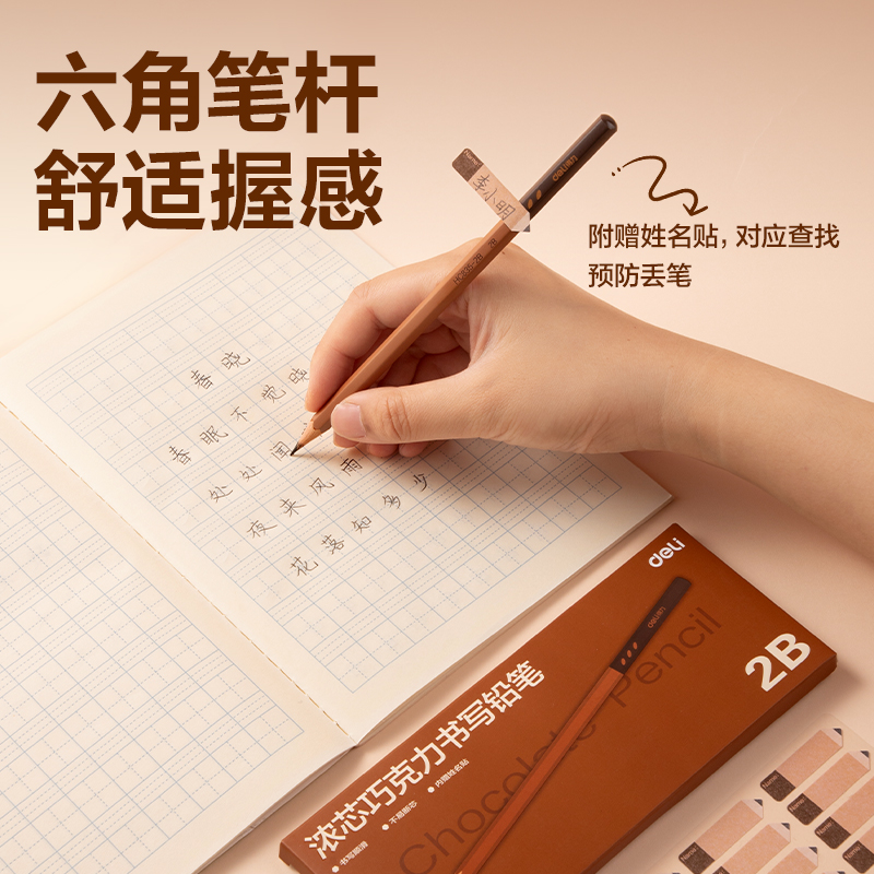 得力巧克力浓芯书写铅笔一二年级小学生专用2b考试hb不易断绘图考试素描铅笔幼儿园儿童练字无铅毒