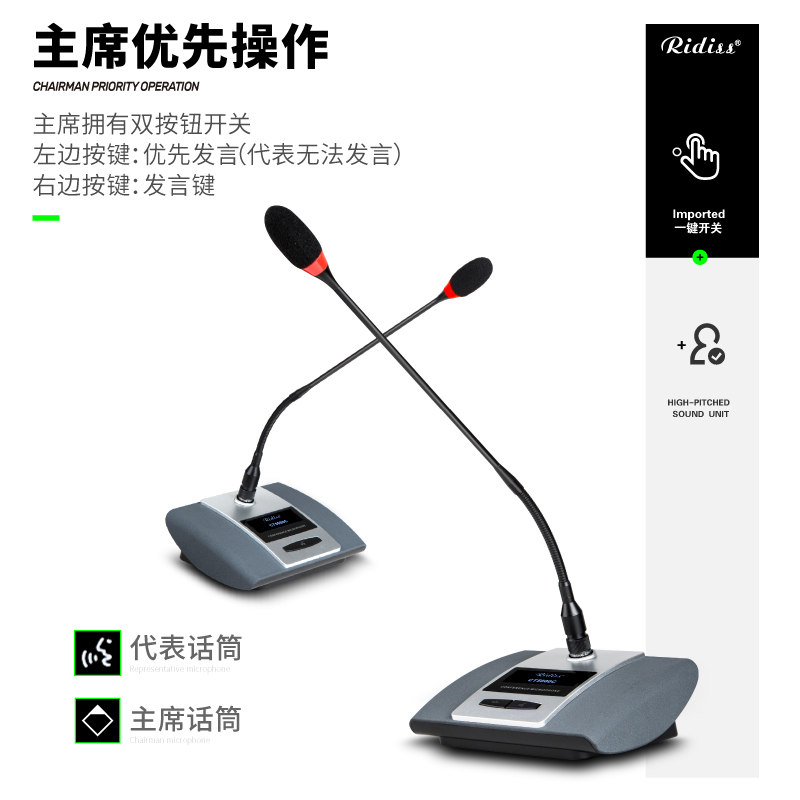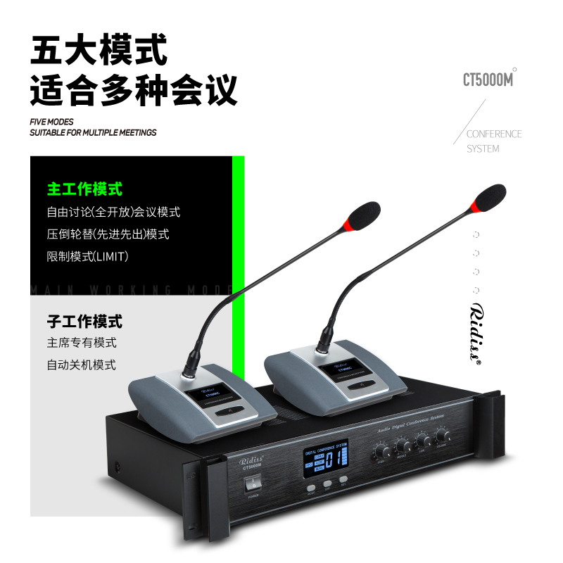 CT5000数字有线手拉手讨论型会议系统桌面鹅颈短杆方管电容麦克风