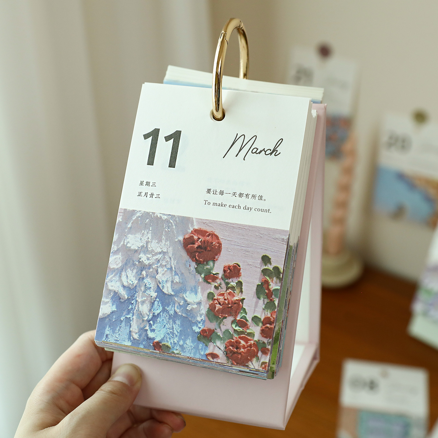 日历2026年新款 油画365天每日一撕 高颜值桌面台历治愈摆件ins风