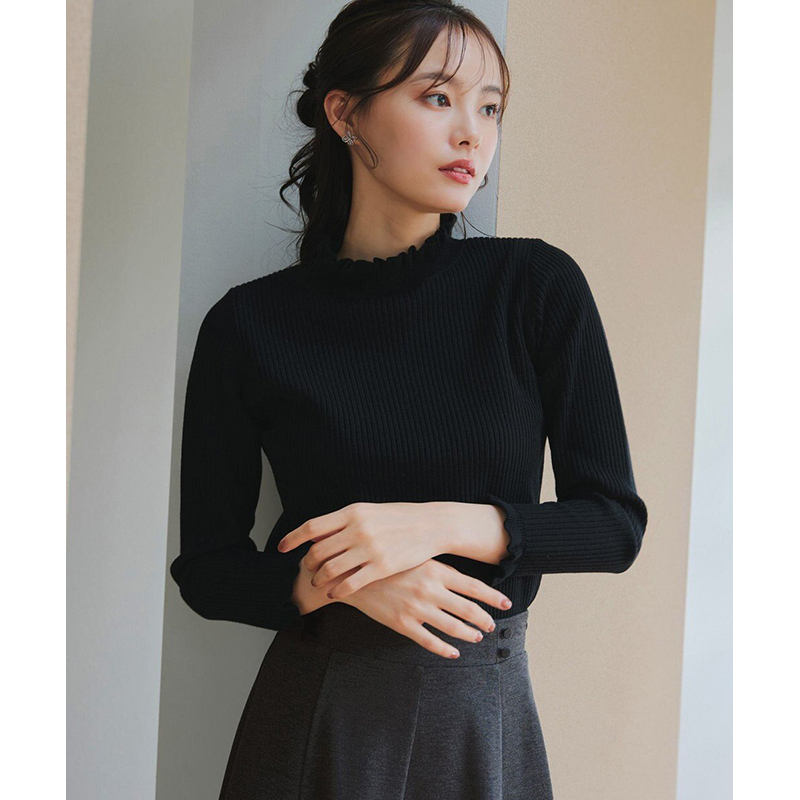 Tiaclasse 可水洗 日系温柔木耳花边领针织上衣冬季新款女士罗纹
