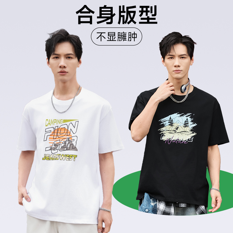 【商场同款】真维斯男装纯棉T恤2025夏季新款圆领印花套头短T男