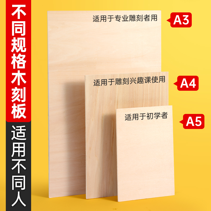 马利木刻板A4全椴木版画木板对开A3雕刻手工胶板对开版画木刻刀A5版画初学者学生用双面美术绘画板美术生专用