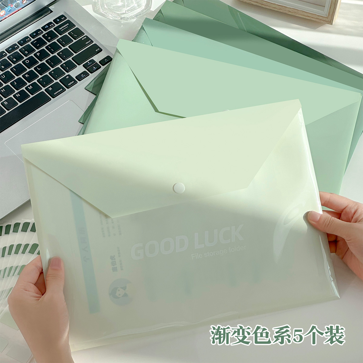 三年二班渐变A4文件袋按扣学生用加厚大容量试卷收纳袋资料档案袋