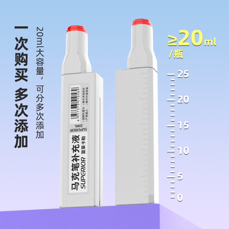 秀普富莱卡勒马克笔墨水油性酒精马克笔添加墨通用一代二代三代四代五代六代补充液20ML毫升填充液单瓶装正品