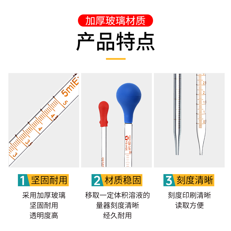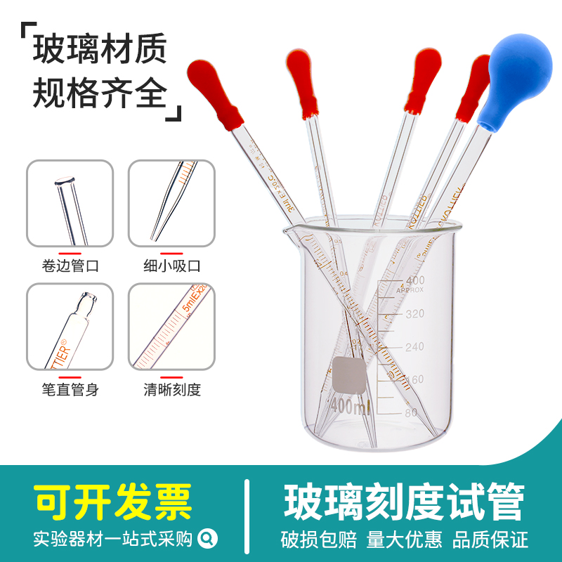 玻璃胶头滴管带刻度滴管玻璃吸管配红皮头胶帽球头0.5ml/1ml/2ml/3ml/5ml/10ml毫升化学生物实验室教学仪器材
