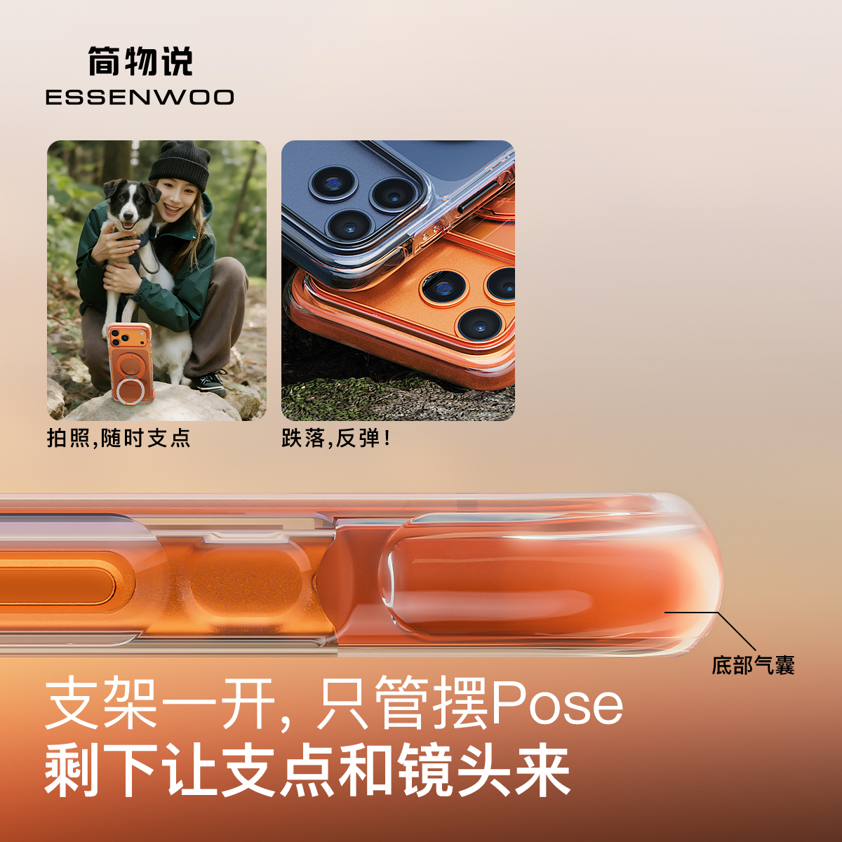 简物说适用苹果17promax手机壳17新款iphone16pro气囊支点壳磁吸透明保护壳男女ip17超薄简约高级感全包防摔