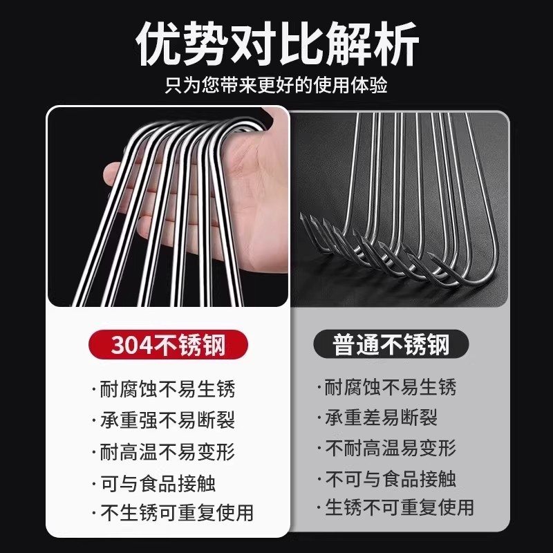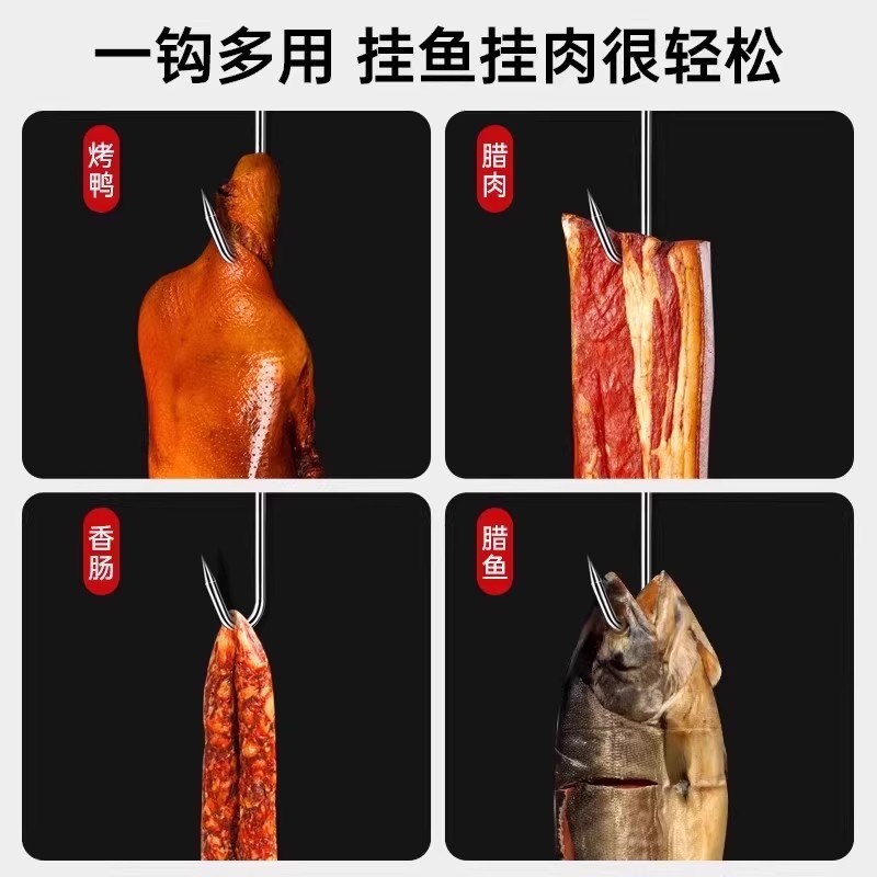 加粗S型晒腊肉挂钩304不锈钢大号实心挂猪肉香肠烤鸭尖头挂肉钩子