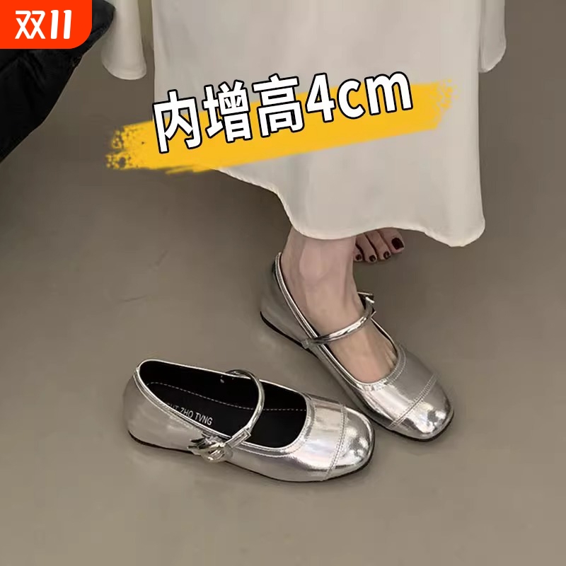 法式内增高银色单鞋女2025新款夏季配裙子玛丽珍鞋晚晚小皮鞋中跟