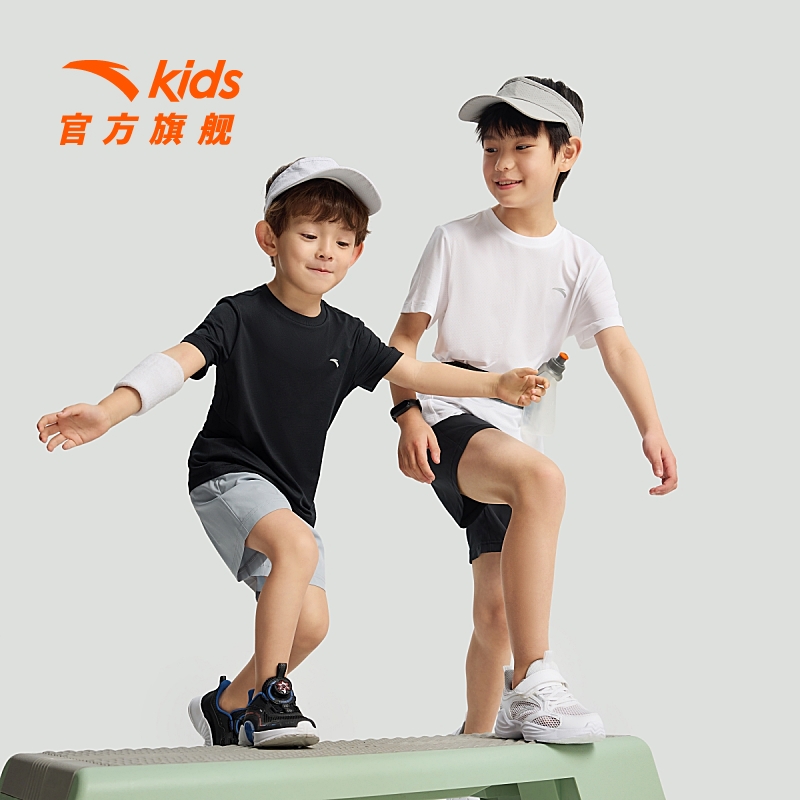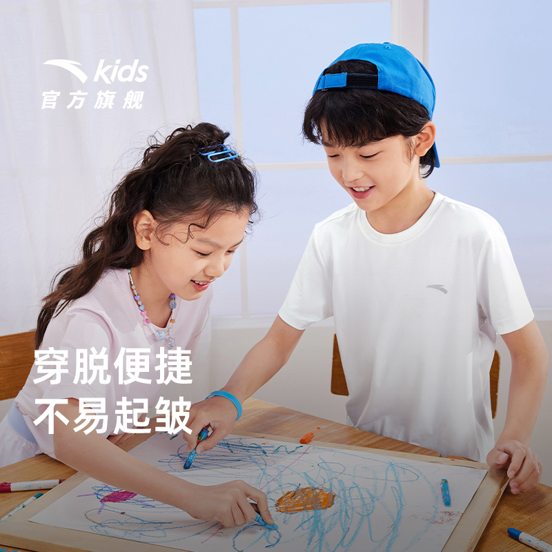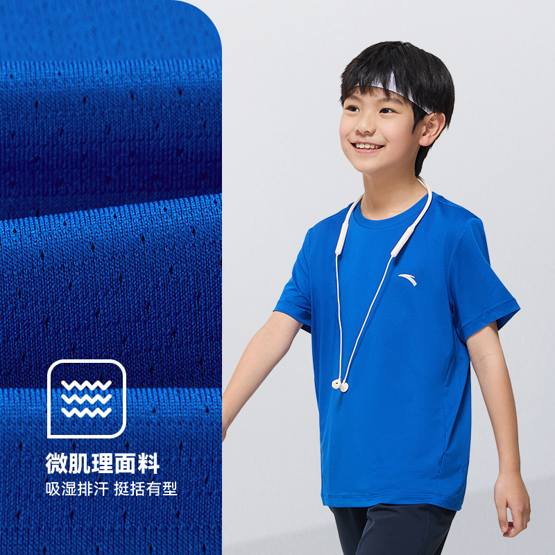 安踏儿童针织短袖衫2025年夏季新款男女大小童吸汗速干易去污短T