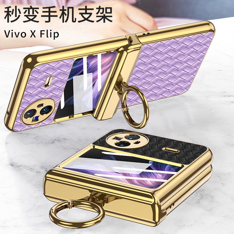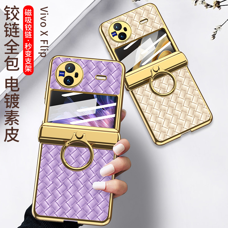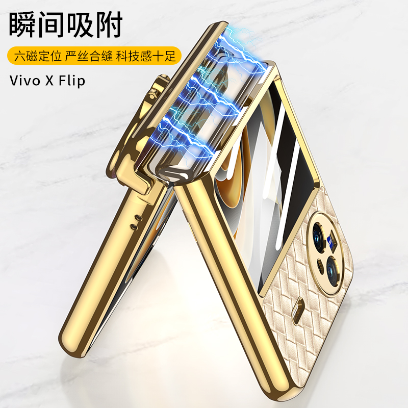 适用于 vivo XFlip手机壳电镀素皮侧边磁吸转轴x flip1代上下折叠侧边铰链全包指环支架钢化玻璃膜防摔保护套