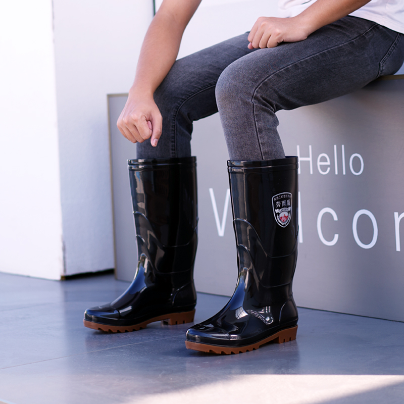 劳保高筒水鞋男牛筋底胶鞋雨鞋耐磨水靴加厚防滑防水钓鱼中筒低帮