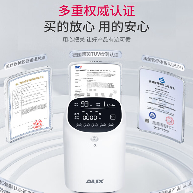奥克斯制氧机家用吸氧机老人用氧气机小型9升L家庭式雾化呼吸一体