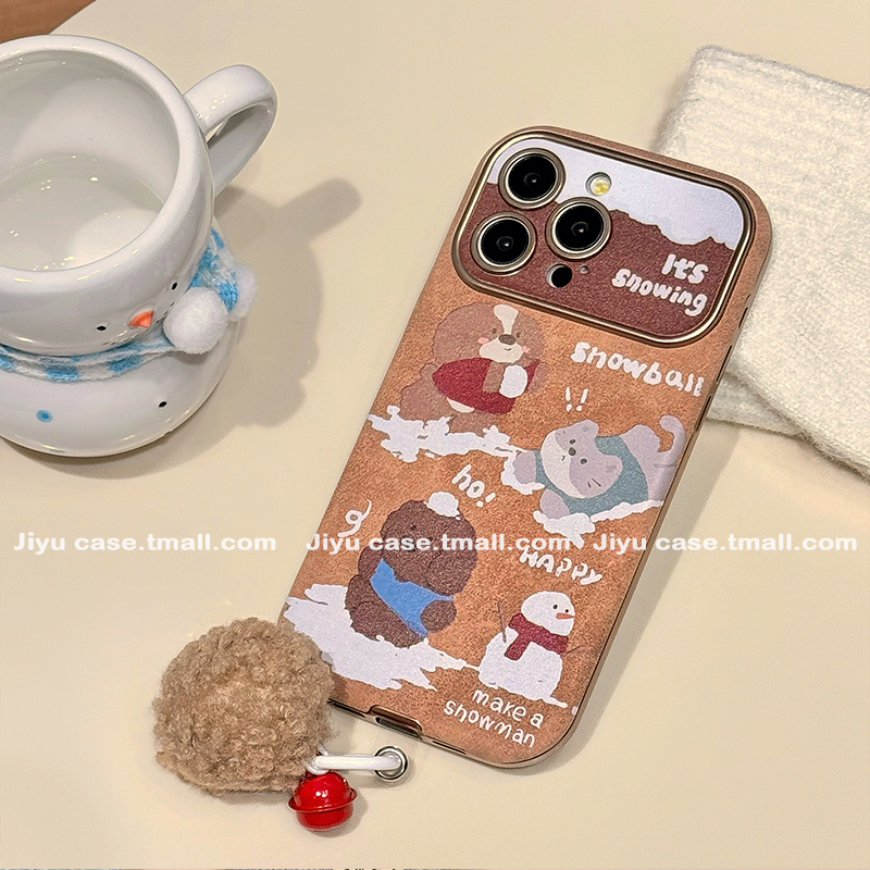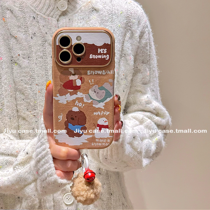 趣味卡通雪人小熊猫咪适用苹果16promax手机壳iPhone15新款14pm秋冬复古13女16大视窗15pro韩风16pro全包皮质