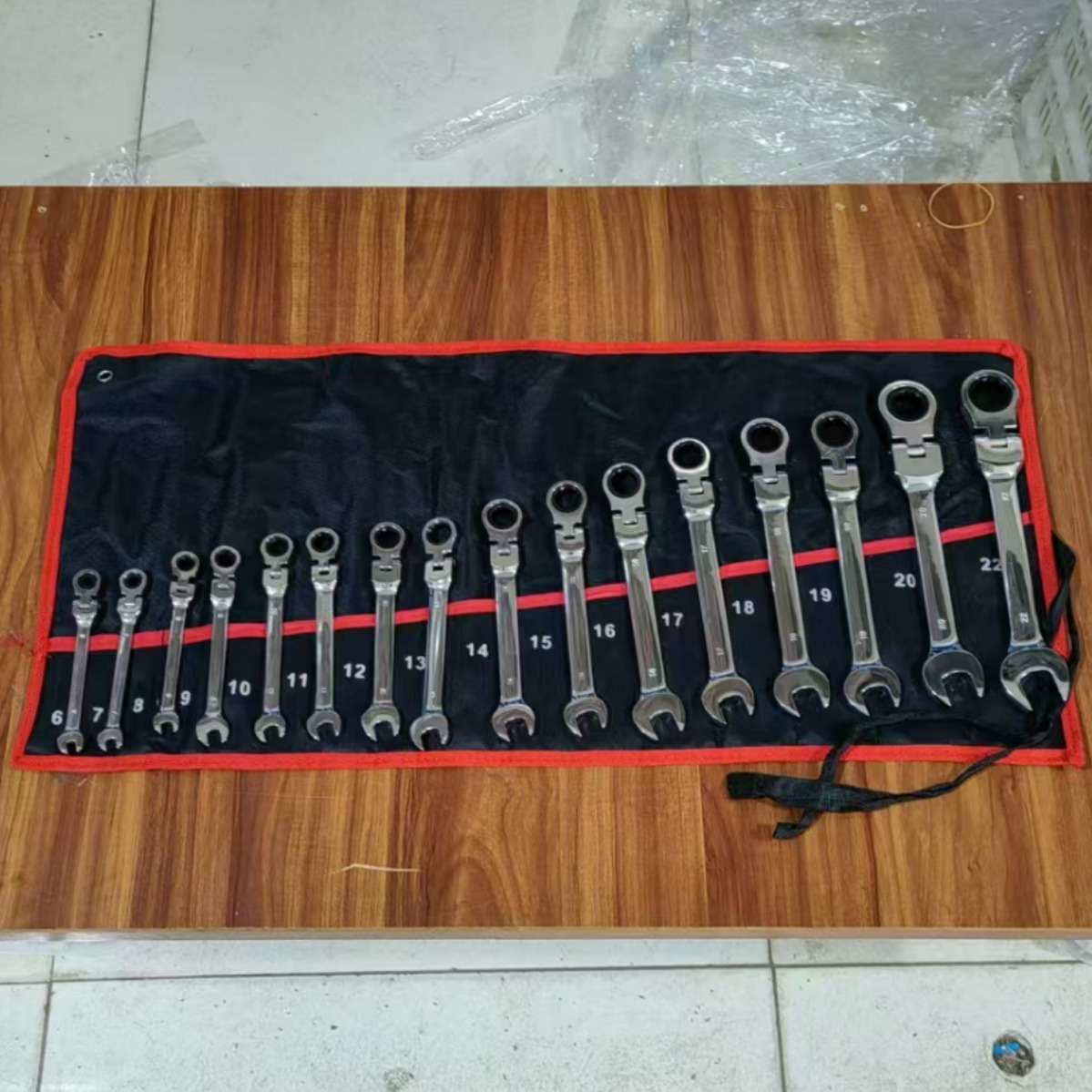 活头棘轮扳手黑色布袋16支套装汽修工具组套扳手两用扳手呆扳手