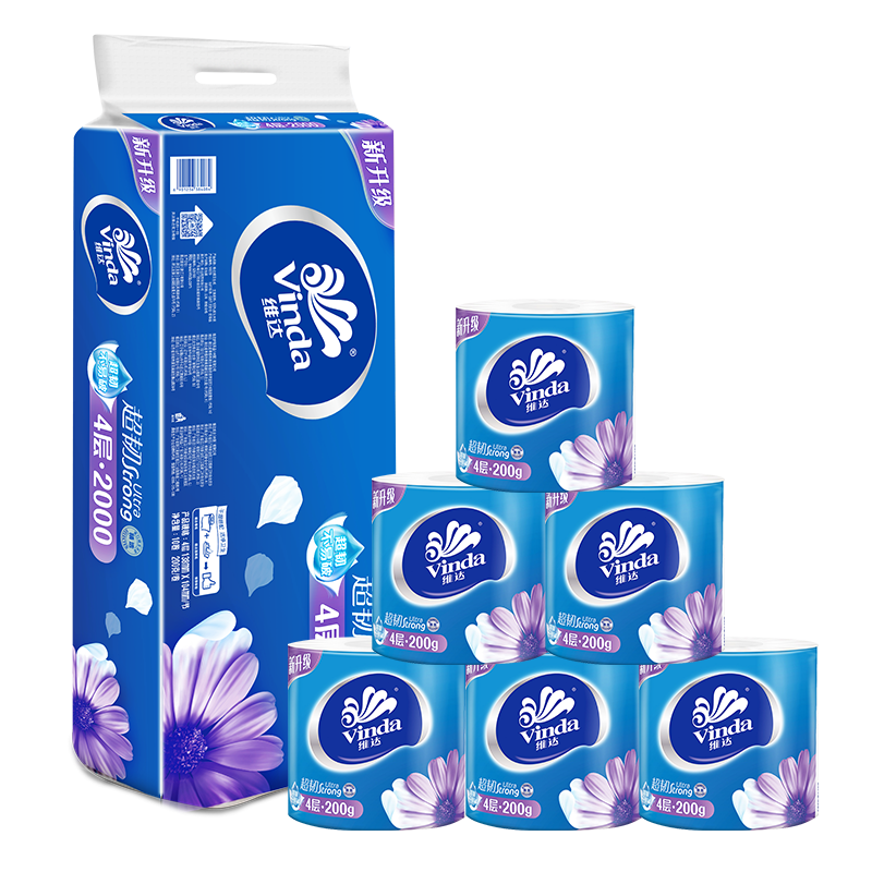 维达超韧有芯卷纸4层加厚卷筒纸家用卫生纸实惠装厕纸湿水不易破
