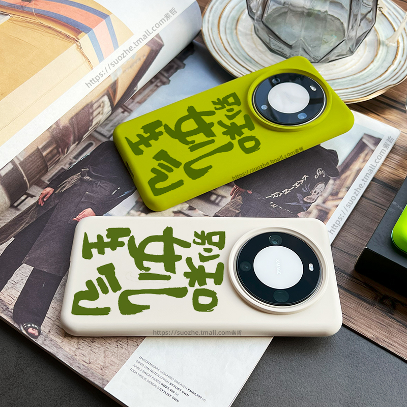 别和女儿生气适用华为mate60pro手机壳小众男士款mate50趣味个性书法文字pro+镜头不包mt40绿色软胶保护套30e