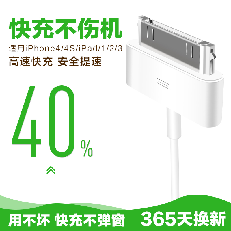 适用于苹果4s数据线充电线苹果四适用于iphone4s数据线手机ipad23平板快充电器头老款宽口宽头正品加长冲点线