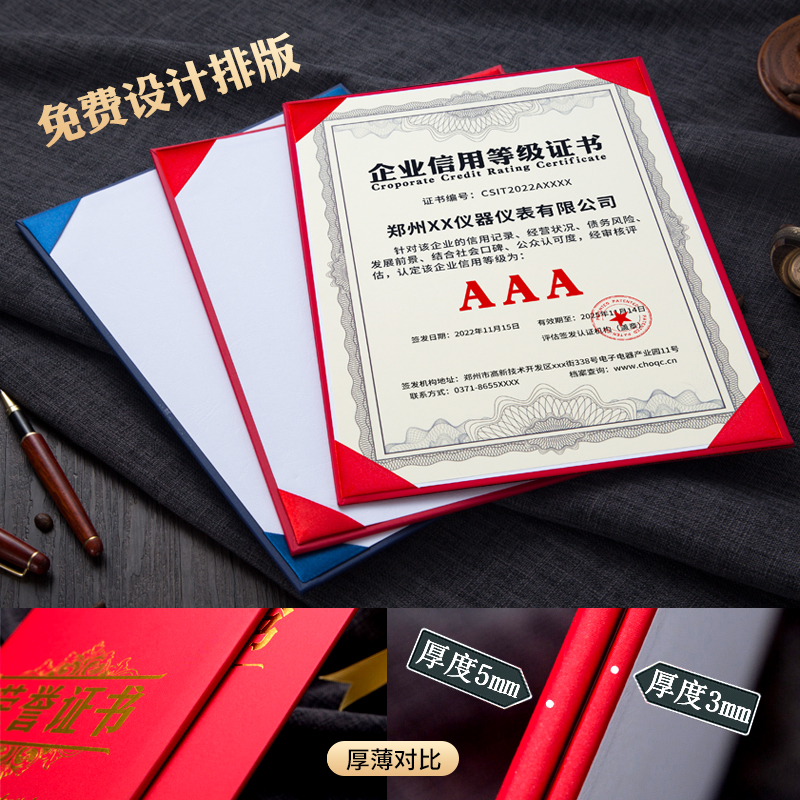 a4单面证书保护套单页单片式荣誉证书封皮竖款聘书竖版结业证件书奖状框获奖封面定制外壳不折叠封套证书套