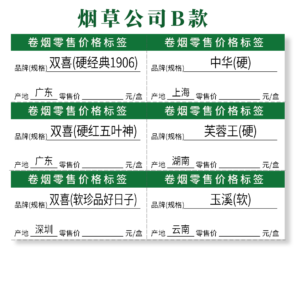 B款香烟零售价格标签不干胶数字推烟器有名称有产地不印价格