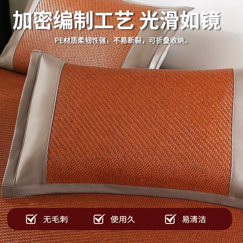 2025新款凉感PE雪藤席夏天冰丝席家用凉席子加厚可折叠藤席三件套