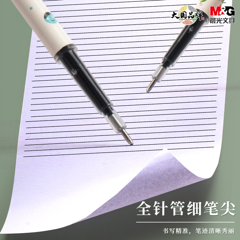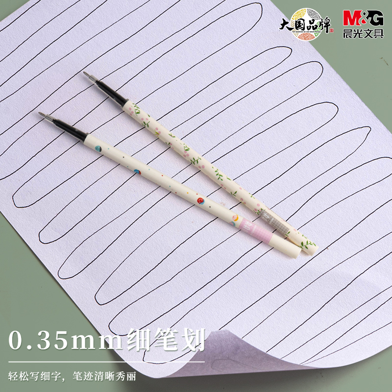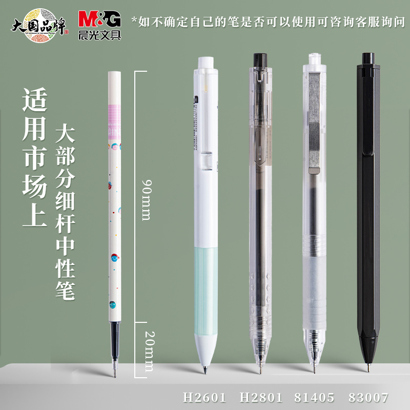 晨光按动笔芯中性笔芯0.35mm黑色全针管本味系列碳素签字水笔学生用按动式弹簧按动笔 细头AGR66103