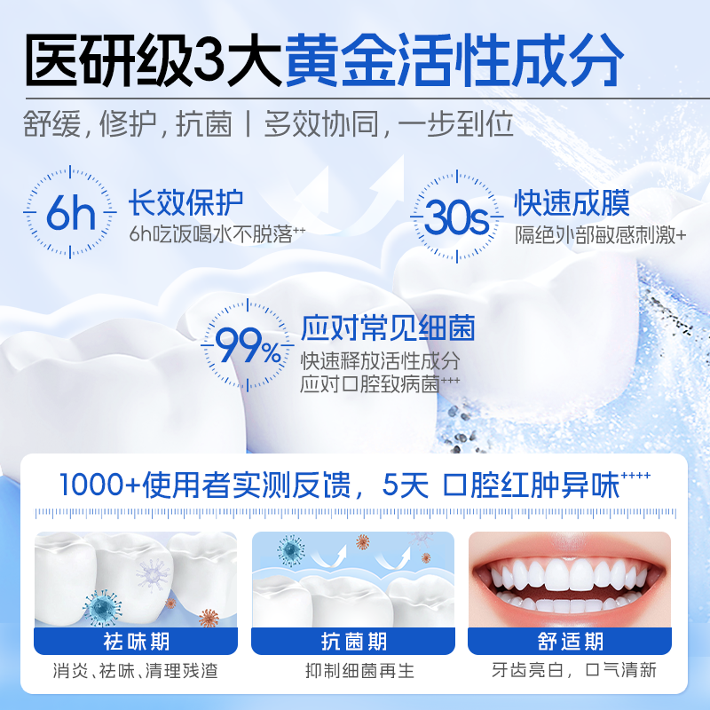 白云山医用漱口水杀菌除口臭消炎牙周炎牙龈萎缩修复溃疡肿痛再生