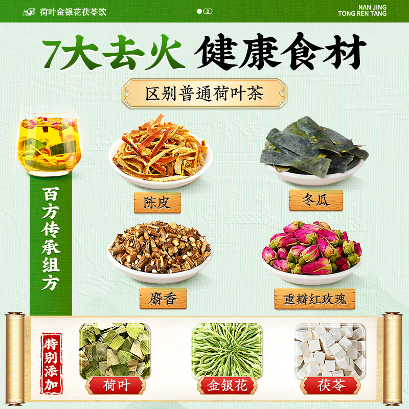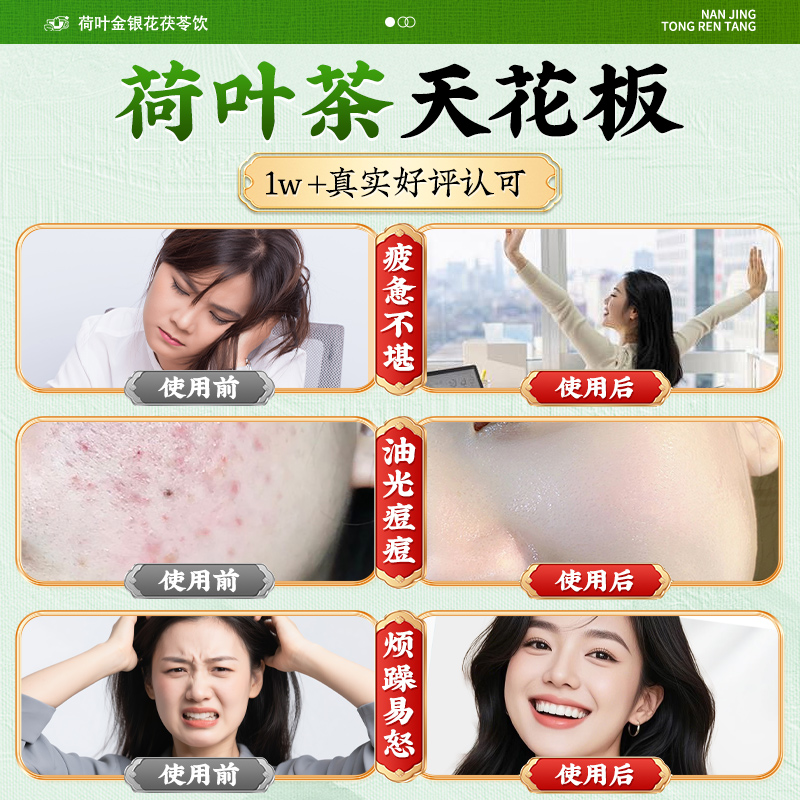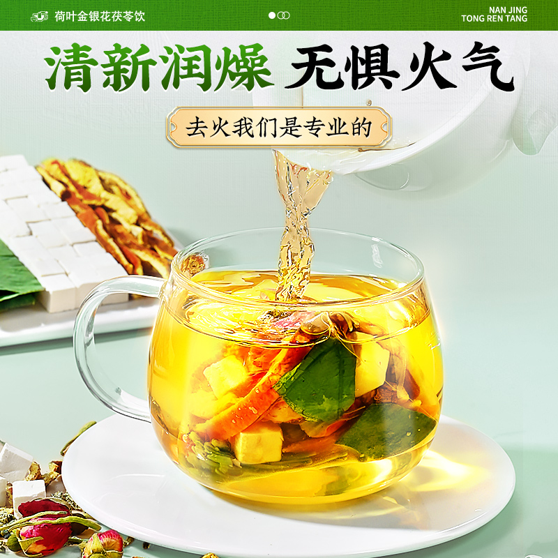 同仁堂荷叶金银花茯苓饮茶包祛湿男女下去火清热解毒金银花养生茶