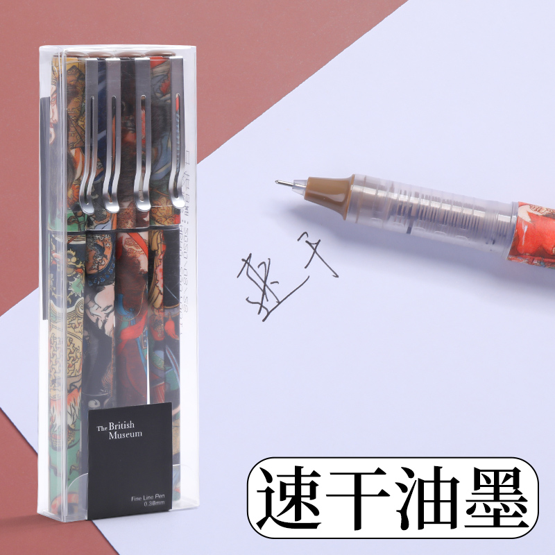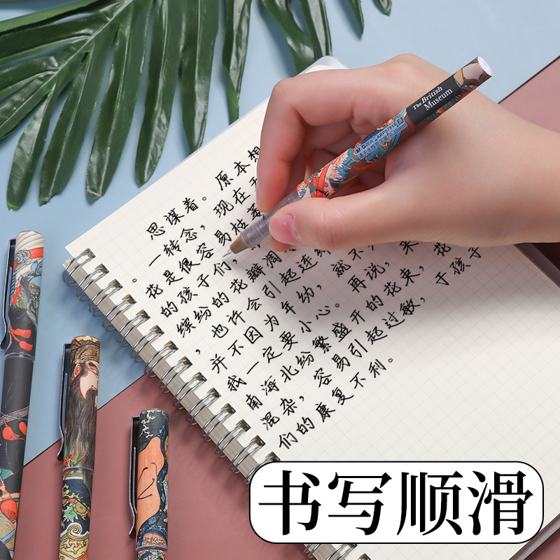 晨光直液式走珠笔大英博物馆联名限定中性笔三国志限量款水浒豪杰传学生考试用水笔盲盒0.5黑色北斋富岳0.38