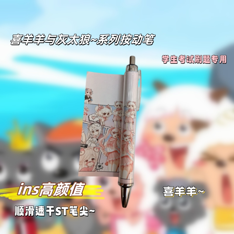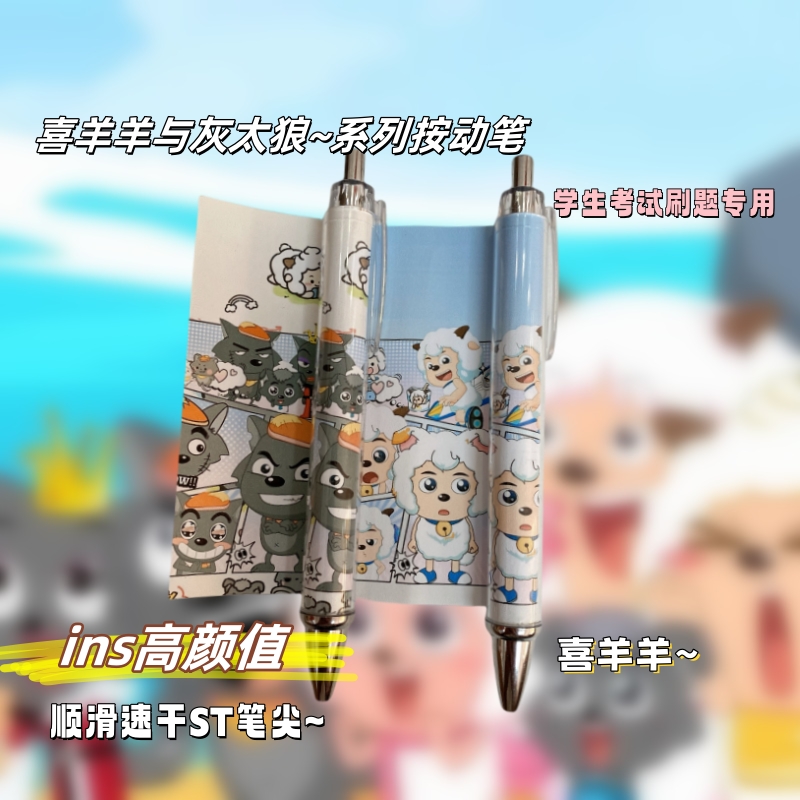 喜羊羊与灰太狼按动中性笔卷纸笔ins高颜值0.5mm学生刷题考试黑笔