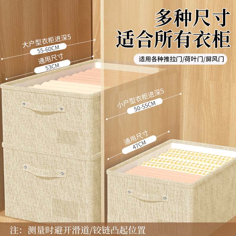 棉麻衣服收纳神器分层衣柜收纳可折叠裤子衣物大容量储物筐收纳盒