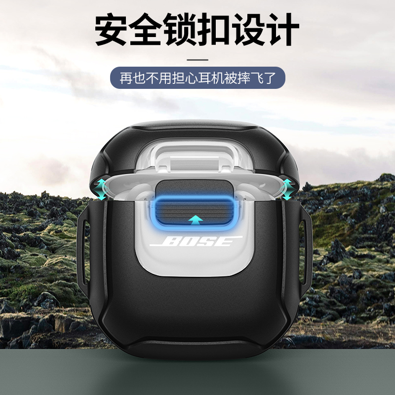 牧行者适用Bose QC消噪耳塞Ultrall耳机保护套大鲨四代保护套自动开盒大鲨三代耳机壳锁扣固定大鲨二代防摔壳