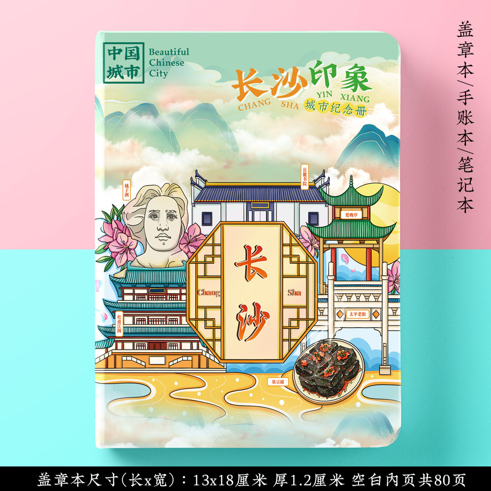 文创原创城市天津长沙旅行便携盖章本打卡收集册空白笔记本手账本
