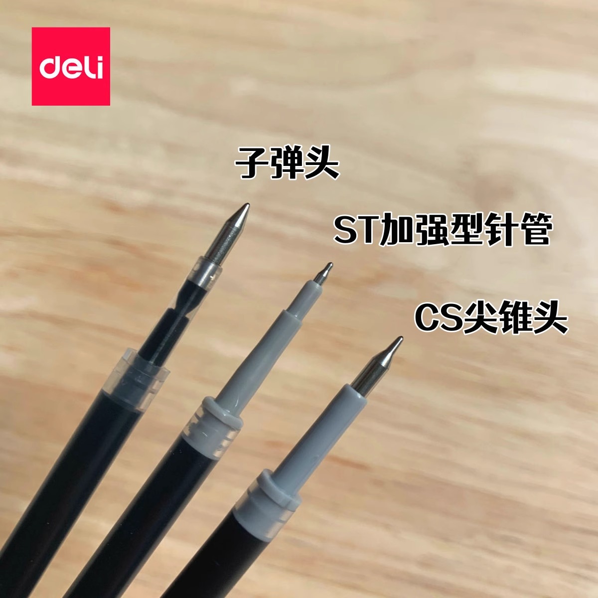 得力按动笔芯ST针管替芯尖锥CS芯子弹头芯学生考试中性笔黑色0.5