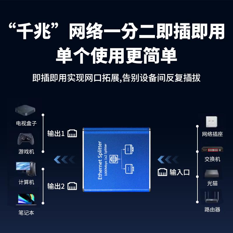 火翼千兆网路延长线一分二笔电路由器转接口一拖多进三出同时上网家用网路线转换器宽带分路器小型交换机