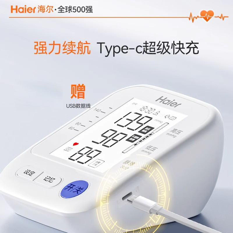 海尔医用电子血压计家用测量仪老人高精准量测血压的仪器臂式器表