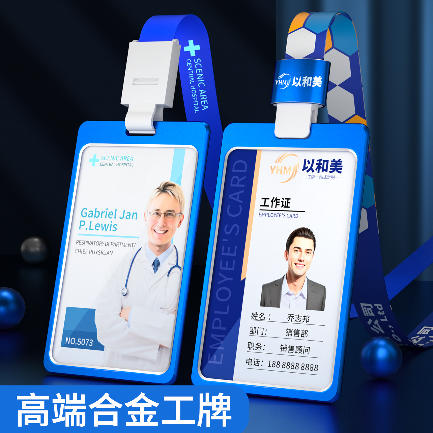 以和美铝合金工作证卡套带挂绳公司员工工牌厂牌挂脖订制胸牌挂牌胸卡证件套工卡学生校牌壳子工作卡证套校园