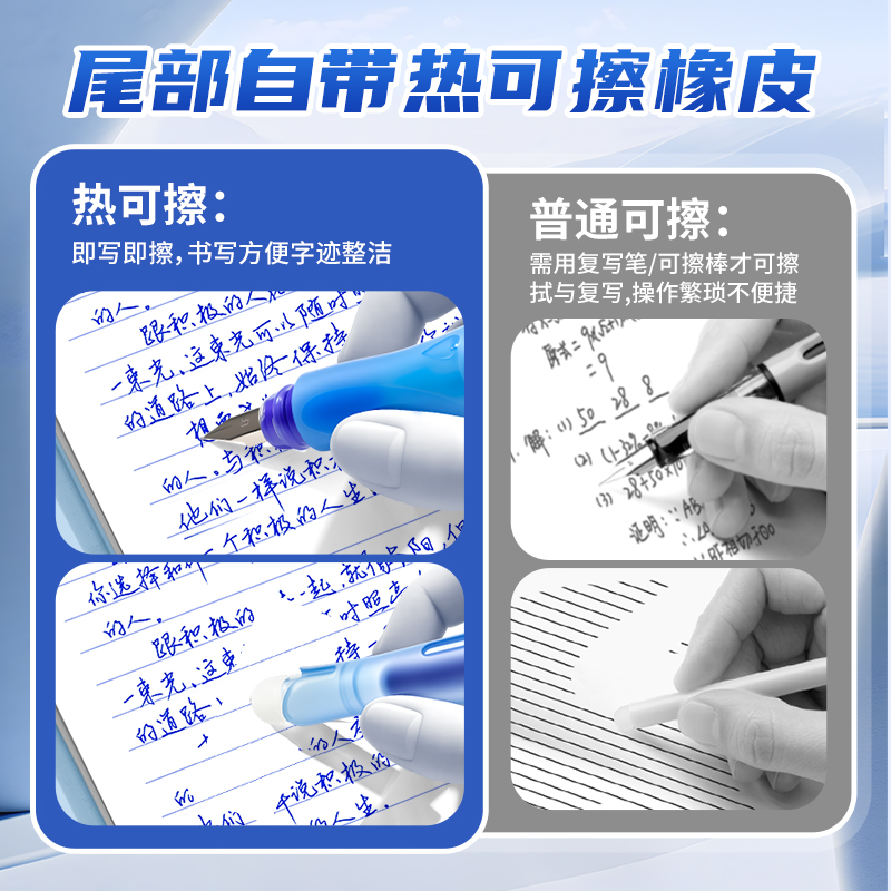 2024新品英雄牌钢笔热敏可擦钢笔小学生专用三年级练字橡皮擦小暗尖0.38可擦魔力擦晶蓝色墨蓝儿童男孩女孩