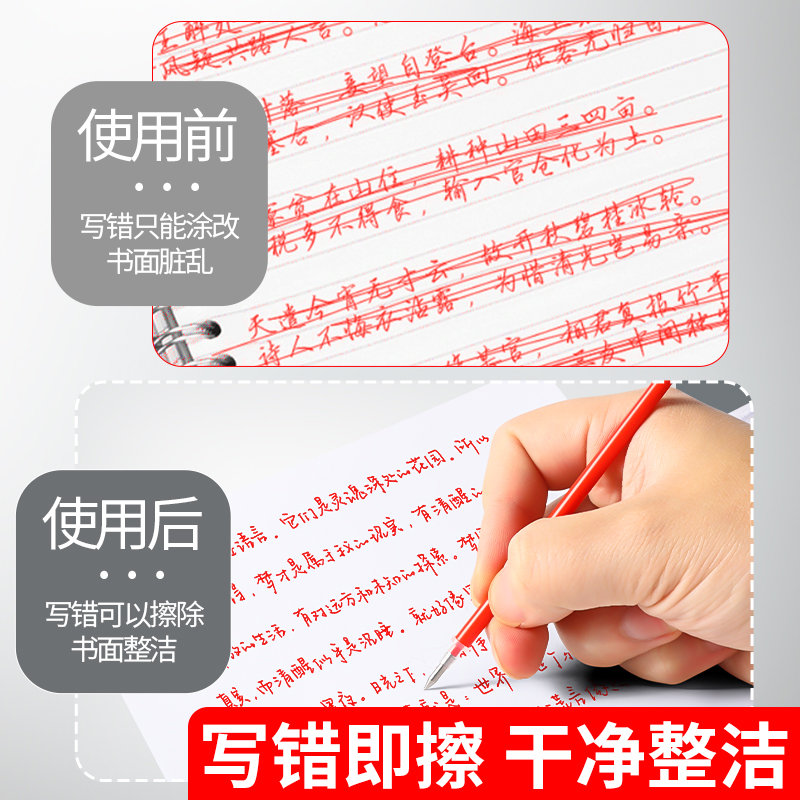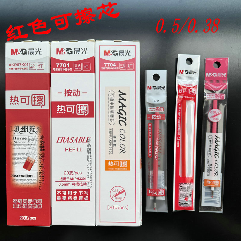 晨光红色可擦水笔芯按动0.38细学生用热可擦替芯0.5通用红批改用