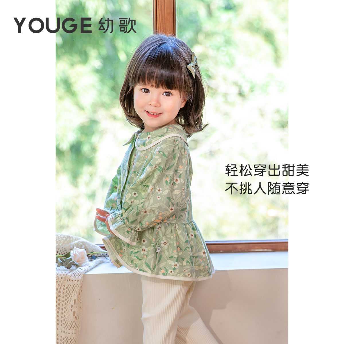 YOUGE幼歌 女童裙摆式娃娃衫背心套装儿童清新森系弹力云朵裤马甲