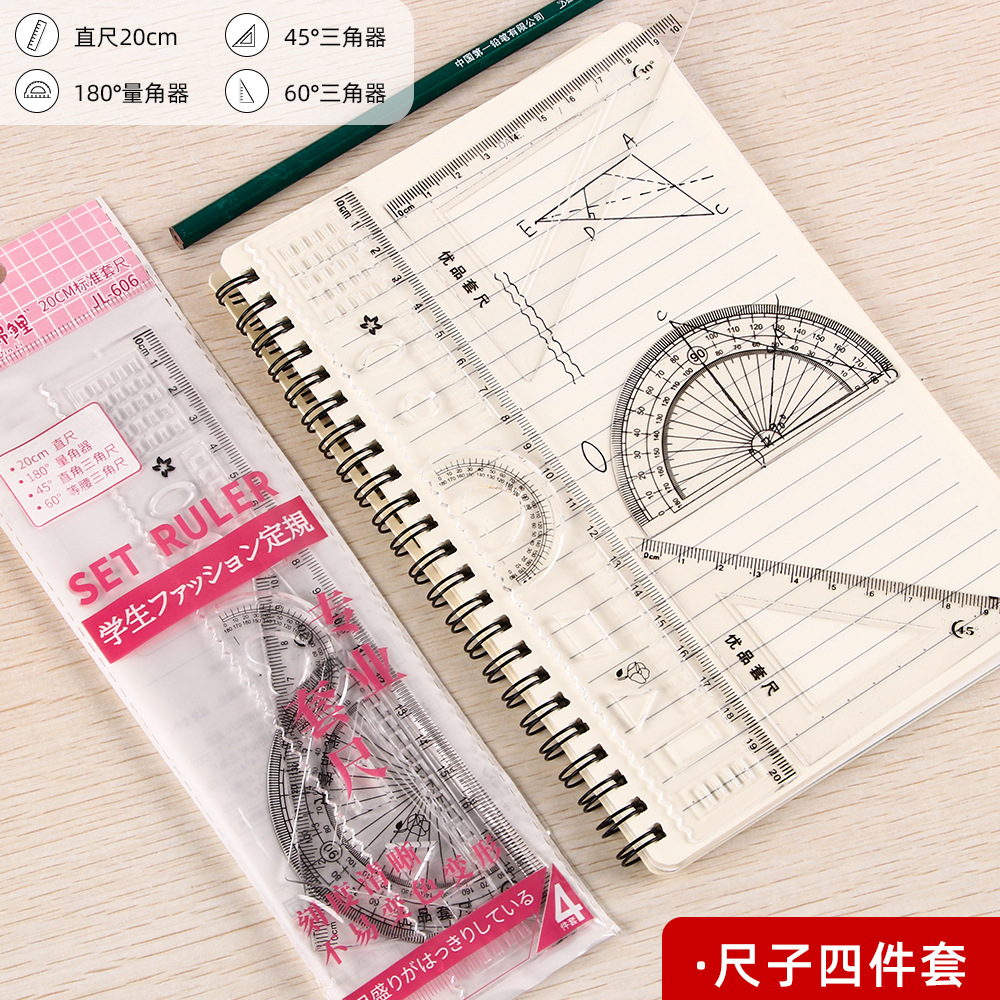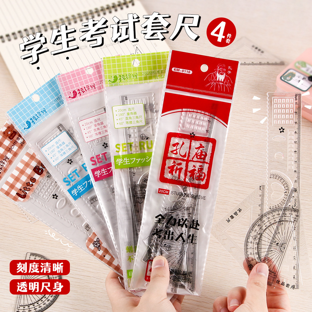 批发套尺便宜几毛钱小学生四件套20cm透明三角尺直尺量角器清仓