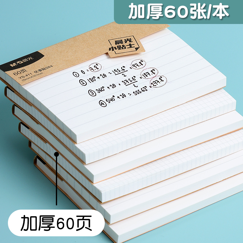 晨光便利贴本味系列白色5本装简约口袋便签本学生方格空白内页记事本提醒标注便条便利贴标签贴可撕n次贴
