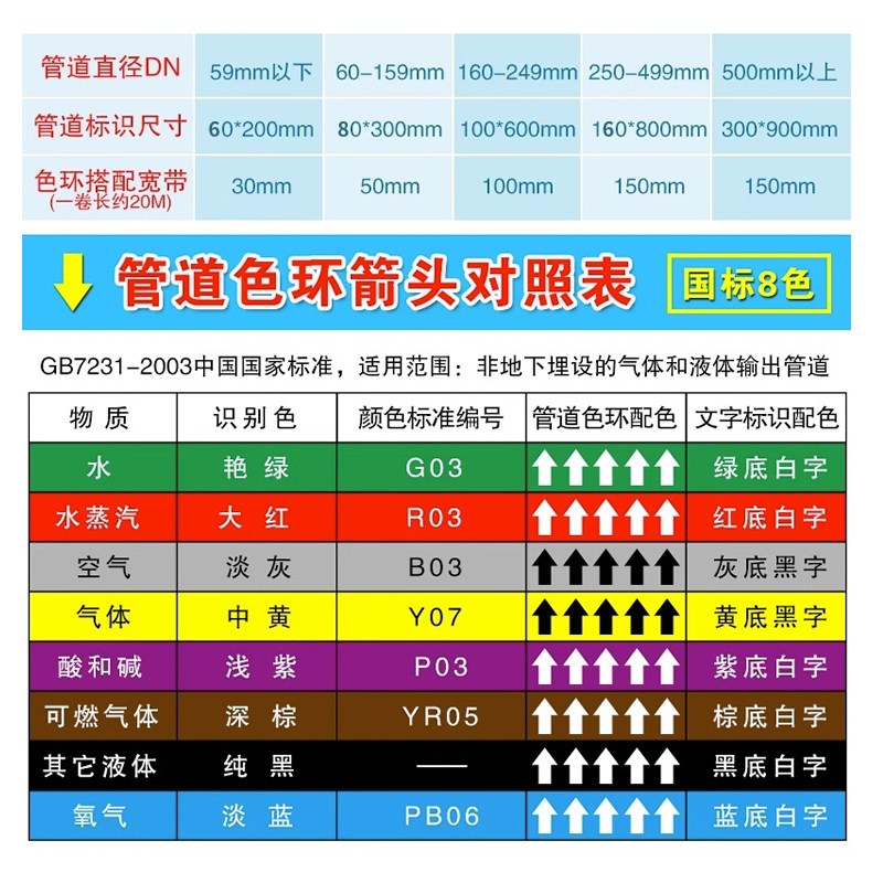 热销燃气管道流向标识贴警示牌指示介质流向箭头天燃气管道标识牌